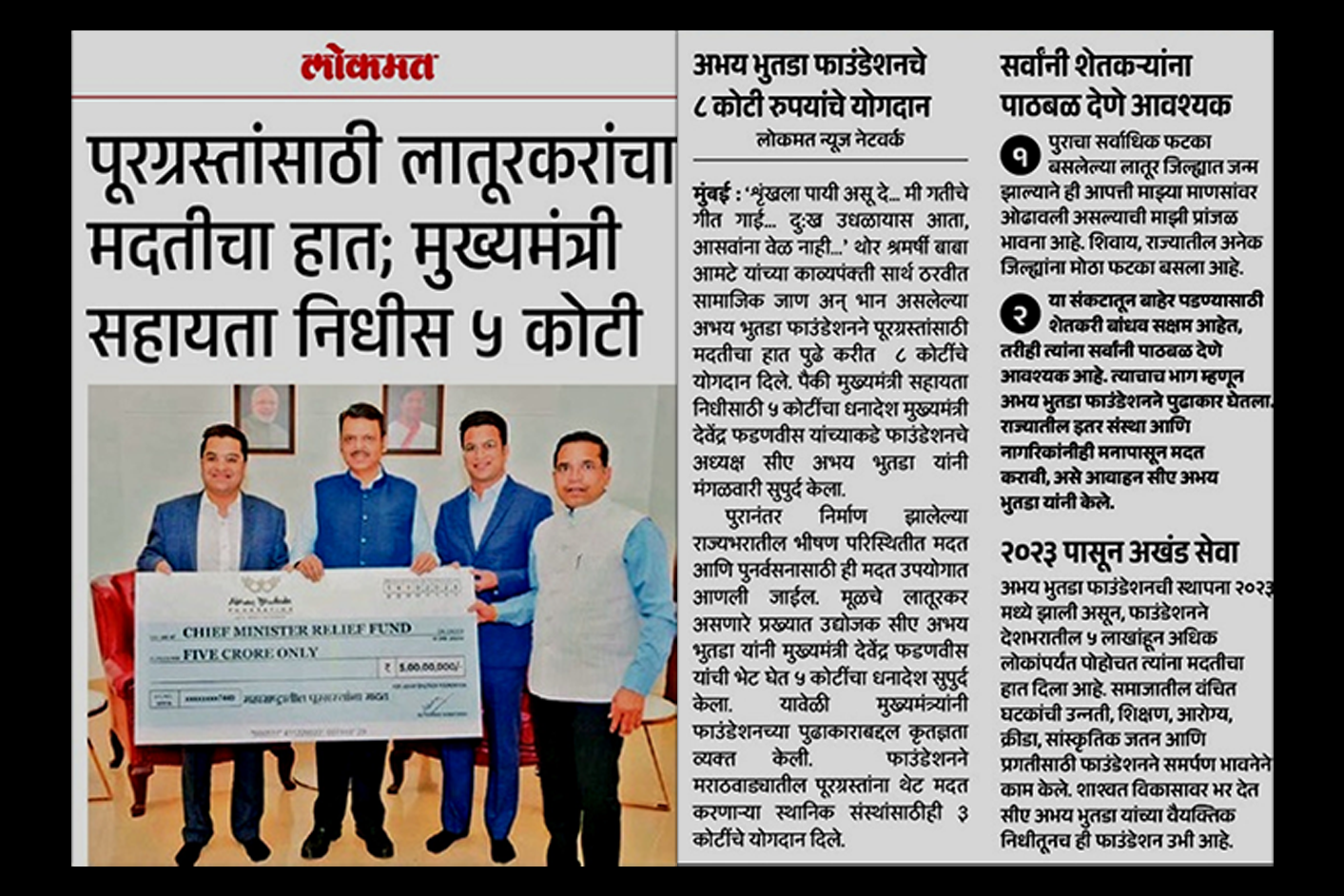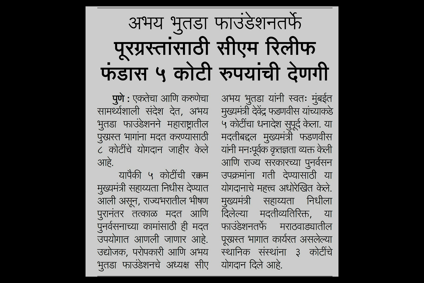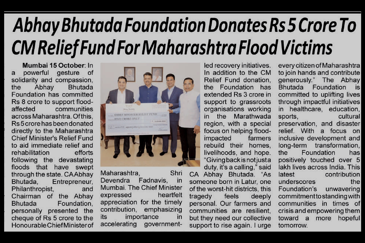 अभय भुटाडा फाउंडेशन ने महाराष्ट्र बाढ़ पीड़ितों के लिए मुख्यमंत्री राहत कोष में 5 करोड़ रुपये दान किए